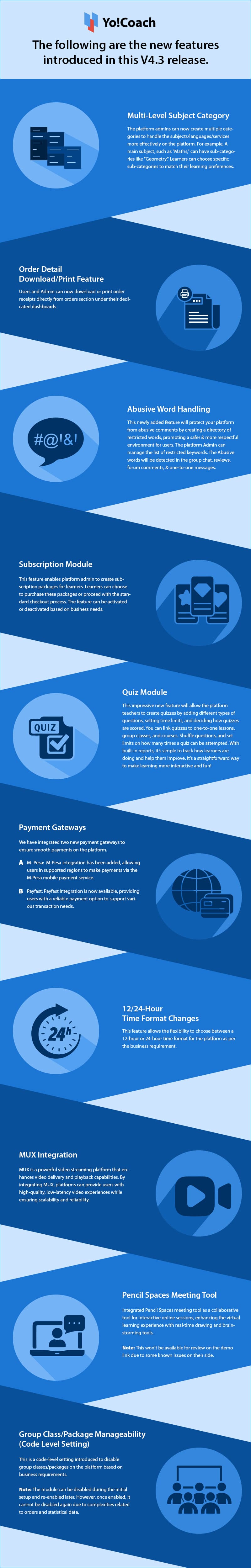 With the help of this infographic, let’s gain insights into what’s new we are offering with Yo!Coach Version 4.3.