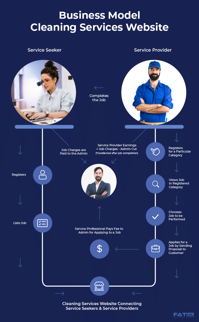 Diversification in income streams is required to ensure steady returns and become profitable. On a cleaning services marketplace, the marketplace owner can use the following revenue generation channels: