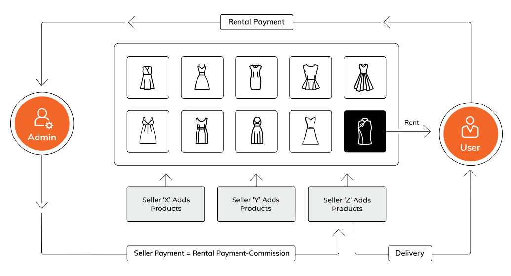 Besides making money from renting clothes, your online dress rental platform can generate revenue from the following channels: