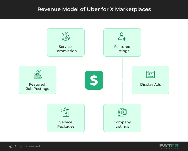 Digital businesses earn through diversified revenue streams. The same is the case with Uber for X marketplaces. With diversification in revenue generation streams, founders are able to ensure quick returns, stable income, and reach the breakeven point faster. Here are some revenue generation streams that are feasible for an Uber for X business: