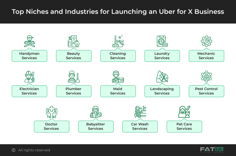 As said above, the Uber for X architecture can be applied to a number of niches in the service industry. Below are the most lucrative ones: